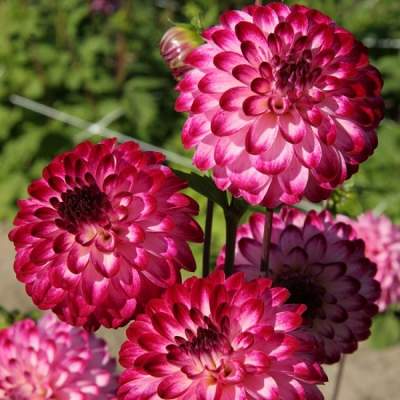 Георгин Little Robert (Литл Роберт). Помпонный георгин с цветками около 10 см. Лепестки белые с ярко-малиновыми кончиками.