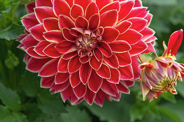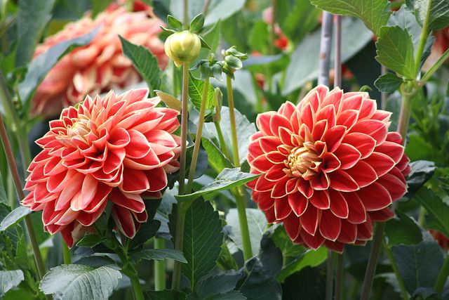 Полив и внесение удобрений. Поливать георгины надо регулярно, но без излишнего энтузиазма. Если при посадке лунка была хорошо удобрена, то первое внесение подкормки можно немного отложить до тех пор, пока не начнет образовываться зеленая масса. Если почва не была удобрена, то уже через неделю следует позаботиться о подкормке органикой. Сделать это легко. Достаточно выкопать по периметру куста лунки, всыпать в них удобрение, а затем выровнять почву граблями. Повторять процедуру рекомендуется несколько раз за сезон.