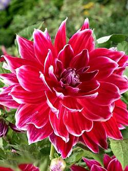 Георгин Mero Star (Меро Стар). Красный с белыми кончиками, диаметр цветка 16 см.