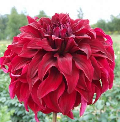 Георгин Mingus Alex (Мингас Алекс). Роскошный георгин из группы декоративных. Цвет густо-бордовый. Диаметр соцветия около 20 см. Соцветие с отгибающимися волнистыми лепестками, прекрасной формы. Высота куста 120 см.