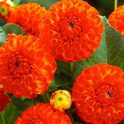 Георгин New Baby (Нью Бэйби). Помпонный георгин с цветками около 7 см. Цвет ярко-оранжевый, цветение обильное.