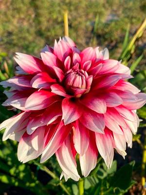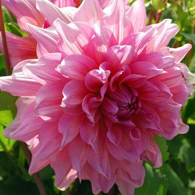 Георгин Otto's Thrill (Оттоз Трилл). Эффектный сорт из серии "гигантских" георгин, с диаметром цветка до 30 см! Цветок махровый, с плоскими палево-розовыми лепестками, заостренными на кончиках.