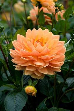 Полив и внесение удобрений. Поливать георгины надо регулярно, но без излишнего энтузиазма. Если при посадке лунка была хорошо удобрена, то первое внесение подкормки можно немного отложить до тех пор, пока не начнет образовываться зеленая масса. Если почва не была удобрена, то уже через неделю следует позаботиться о подкормке органикой. Сделать это легко. Достаточно выкопать по периметру куста лунки, всыпать в них удобрение, а затем выровнять почву граблями. Повторять процедуру рекомендуется несколько раз за сезон.