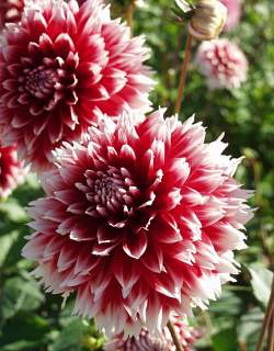 Георгин Red and White Fubuki (Рэд энд Уайт Фубуки). Роскошный георгин из группы Декоративных. Цвет красный. Диаметр соцветия около 11 см. Соцветие с заостренными лепестками, кончики лепестков белые. Красивая форма цветка.