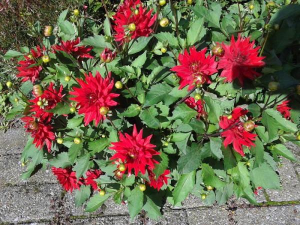 Георгин Red Pygmy (Ред Пигми). На невысоком кустике (40 см) крупные ярко-красные цветы! Чудесное зрелище.