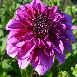 Георгин Richards Fortune (Ричардс Форчун). Рыхлый махровый центр бордовой окраски в обрамлении ярко-пурпурной юбочки. Смотрится очень эффектно.