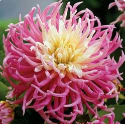 Георгин Star's Favourite (Старз Фейворит). Очень красивый сорт! Ярко-розовый, центр — светло-желтый, диаметр цветка от 16 см, имеет несколько наград.