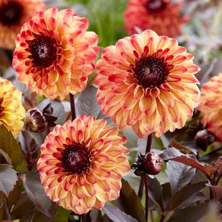 Георгин Tirza (Тирца). Листья коричневато-пурпурные.
