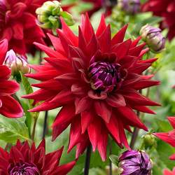Георгин Wittemans Best (Виттеменс Бест). Куст компактный, ветвистый, стебли прочные, высотой 100 см. Листья многочисленные, перистые, темно-зеленые. Соцветие махровое, ярко-красное, диаметром 15 см.