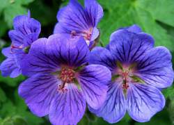 Герань Blue Blood (Блу Блад). Цветок крупный, темно-сиреневый с голубым оттенком и пурпурными прожилками. Обильное продолжительное цветение. Красивые листья.