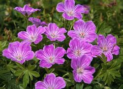 Герань Canon Miles (Кэнон Майлс). Цветки розовые с прожилками. Листья маленькие, округлые, глубоко лопастные, тёмно-зелёные. Кустик маленький компактный, высотой 10 см и шириной 30 см. Цветение обильное. Прекрасное растение для альпнария.