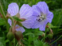 Герань луговая Mrs Kendall Clark (Миссис Кэндал Кларк). Многолетнее неприхотливое растение. Цветок сиренево-розового цвета с белыми жилками. Листва ярко-зеленая, ворсистая, резная. Высота взрослого растения 60-100 см, кусты плотные. С успехом используется в смешанных цветниках и природных композициях имитирующих луг.