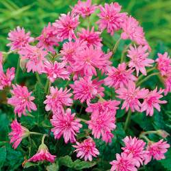 Герань оксфордская Southcomb Double (Сауткомб Дабл). Неприхотливое многолетнее полувечнозеленое травянистое растение. Цветок чистого розового цвета размером 3 см, с прожилками на лепестках, махровый. Листья светло-зелёные. Цветение обильное. Высота взрослого растения 30-40 см.