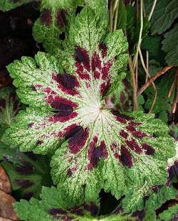Листья декоративные, очень красивые, с белым мраморным рисунком, а позже по контуру с красными пятнами.