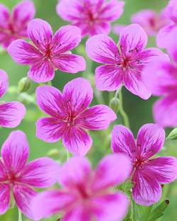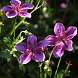 Герань Starman (Стармэн). Неприхотливое многолетнее травянистое растение. Цветок пурпурно-розовый с темными прожилками и темным центром. Листья прикорневые, зелёные, на длинных черешках, резные. Может достигать 50 см в высоту. В зависимости от условий произрастания. Предпочитает солнечные места, но растет и в легкой полутени.