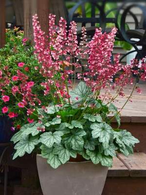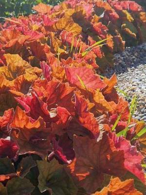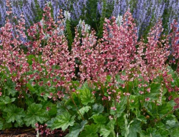 Гейхеры подходят для оформления береговой зоны водоемов; их преимущество — сохранение декоративности с ранней весны до наступления осенних заморозков.
