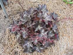 Гейхера Blackout (Блэкаут). Сильное растение высотой до 35 см и темно-пурпурными крупными листьями, напоминающими кленовые. Изюминка сорта — яркий бриллиантовый блеск, сохраняющийся в течение сезона как на молодых, так и на старых листьях, за счёт чего растение очень выигрышно смотрится.