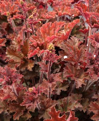 Гейхера Cappuccino (Капучино) — порадует неприхотливостью и шикарным внешним видом. Роскошный многолетник с зеленовато-бронзовой листвой и кремово-желтыми цветочками отлично впишется в любую садовую посадку. Этот сорт отлично смотрится с примулами, геранями, баданом и декоративной осокой.