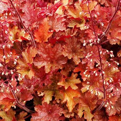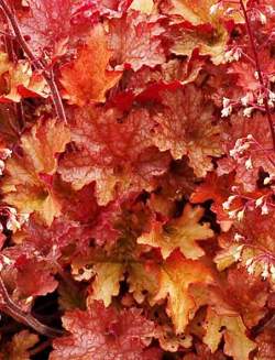 Гейхера Ginger Peach (Джинджер Пич). Яркий сорт, нарядный и кудрявый, но в то же время нежный. Розетка крупная и очень фактурная из-за резных листьев с хорошо заметными прожилками. Быстро растет и декоративна весь сезон.