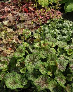 Цветки жёлто-зелёные, собраны в соцветия. Прекрасно себя чувствуют на открытых светлых, но нежарких и лёгкозатененных местах, например, в легкой ажурной тени деревьев. Большинство видов гейхер предпочитают полутень, где солнце бывает в ранние утренние часы, что гарантирует яркость окраски листьев. Предпочитает легкие, хорошо удобренные, окультуренные на глубину 20 см почвы с хорошим дренажем. Не терпит застоя воды - загнивает. Можно окучивать растение, если оно разрослось выше уровня земли. Гейхера заполнит пустоты в цветнике и замаскирует недостатки участка. Её преимущество - сохранение растениями декоративности с ранней весны до наступления осенних заморозков. Кроме того, прекрасно обеспечит переход цвета или его разбавление на клумбах и в цветниках.