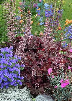 Гейхера предпочитает легкие, хорошо удобренные, окультуренные на глубину 20 см почвы с хорошим дренажем. Не терпит застоя воды — загнивает. Можно окучивать растение, если оно разрослось выше уровня земли. Гейхера заполнит пустоты в цветнике и замаскирует недостатки участка. Её преимущество — сохранение растениями декоративности с ранней весны до наступления осенних заморозков. Кроме того, прекрасно обеспечит переход цвета или его разбавление на клумбах и в цветниках.