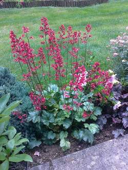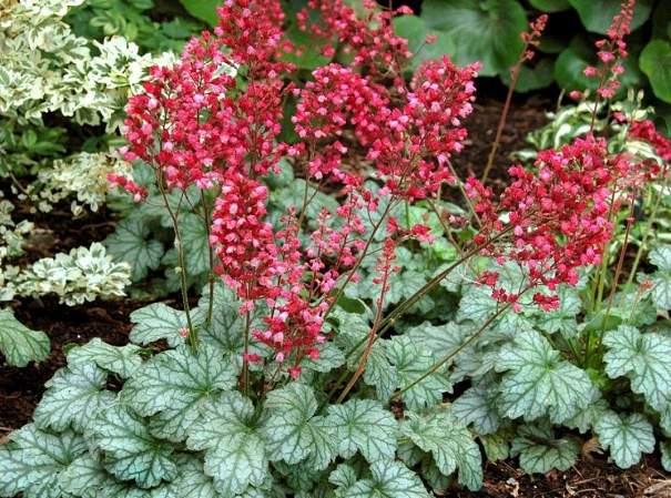 Гейхеры подходят для оформления береговой зоны водоемов; их преимущество — сохранение декоративности с ранней весны до наступления осенних заморозков.