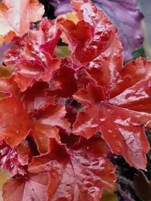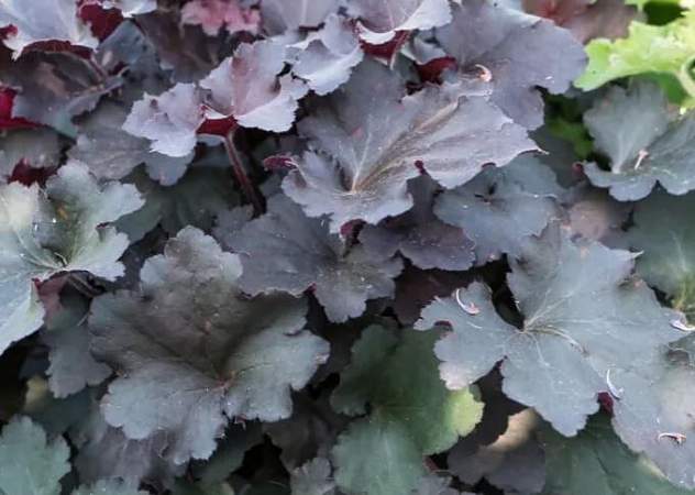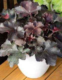 Гейхера Rex Black (Рекс Блэк). Довольно крупная гейхера, достигает в высоту и ширину 50 см. Листья темные, почти черные, плотно прилегают к стеблю. Хорошо растет на открытом солнце.