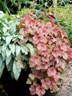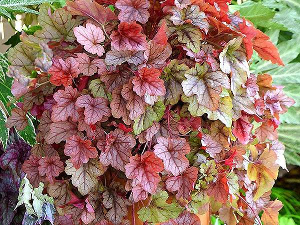 Cooper Cascade (Купер Каскад). Цветовая палитра листьев варьируются от желтого и золотого до медного, а темная серединка меняется от лососевого и красного до терракотового. Прекрасно смотрится в кашпо и вазонах.
