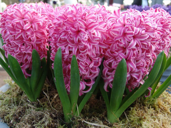 Гиацинт безусловный лидер среди растений, пригодных для выгонки. Его плотные, с сильным ароматом соцветия из звездчатых цветков сидят на безлистных цветоносах. У гиацинта много достоинств при выращивании в открытом грунте: он компактен, его цветки долго не увядают, имеют разнообразнейшую окраску и приятно пахнут. Местоположение лучше солнечное или слегка затененное место. Любая садовая почва с большим содержанием гумуса. Высаживают в сентябре-октябре на глубину 15 см на расстоянии 20 см.