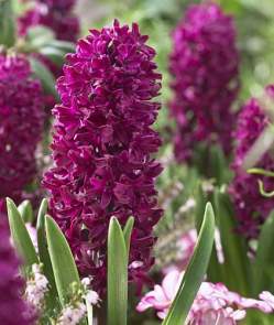 Гиацинт безусловный лидер среди растений, пригодных для выгонки. Его плотные, с сильным ароматом соцветия из звездчатых цветков сидят на безлистных цветоносах. У гиацинта много достоинств при выращивании в открытом грунте: он компактен, его цветки долго не увядают, имеют разнообразнейшую окраску и приятно пахнут. Местоположение лучше солнечное или слегка затененное место. Любая садовая почва с большим содержанием гумуса. Высаживают в сентябре-октябре на глубину 15 см на расстоянии 20 см.
