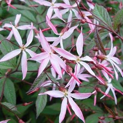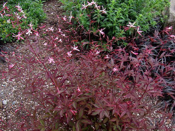 Гилления Pink Profusion (Пинк Профьюжн). Изумительный новый сорт гиллении трехлистной. В отличие от видового растения, этот сорт ниже ростом — всего около 50-75 см. Цветки нежно-розовые. А листва очень яркая — на солнце она становится красновато-бронзовой.
