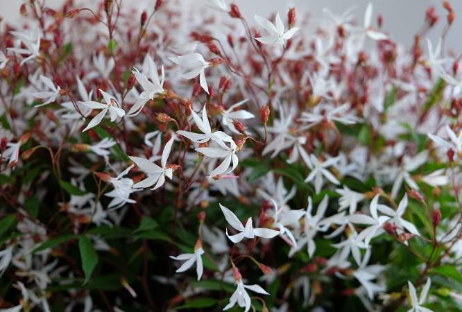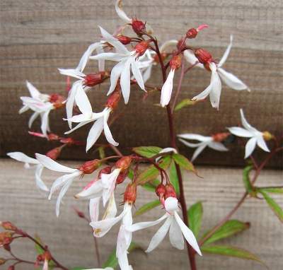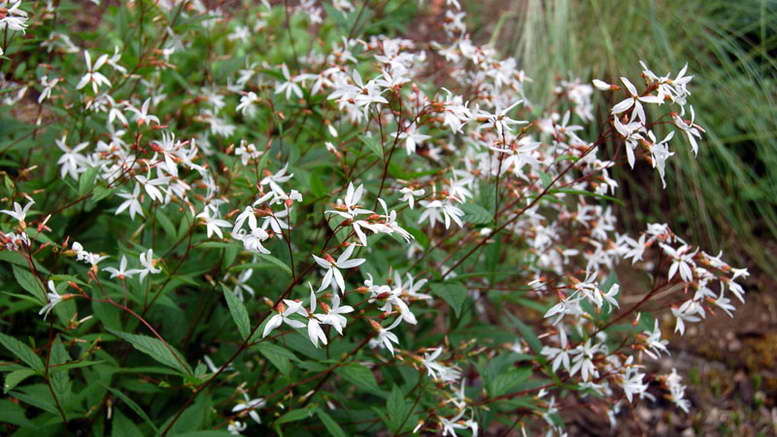 Гилления трехлистная. Словно маленькое облако во время цветения, ее нежные белые цветы прекрасно сочетаются со многими растениями сада. Нежность гиллении обманчива, это растение чрезвычайно стойко к морозу и нетребовательно в уходе.