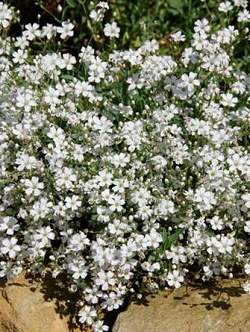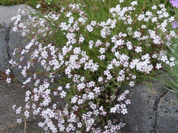Гипсофила Alba (Альба). Высота взрослого растения не превышает 20 сантиметров. Этот сорт применяют для заполнения пустых участков, оформления каменистых горок и альпинариев, украшения зон отдыха.