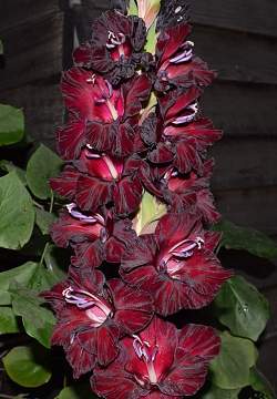 Гладиолус Черная Богиня. 458-С-13. Чёрно-красный с белыми пыльниками. Хорошая гофрировка. Божественно красив.