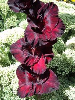 Гладиолус Черный Бархат. Один из самых изящных растений, способен внести яркие и необычные нотки в любой цветник или букет. Его темно-фиолетовый бархатный цвет сыграет определенную роль в вашем саду. Ещё не раскрывшиеся бутоны своим пурпурно-черным цветом приводят к восхищению. Высота 150 см. Соцветие 75 см, 23 бутона (одновременно открыты 9). Бутон 13-13,5 см. Ткань плотная, прочная, устойчивая к солнцу и непогоде.