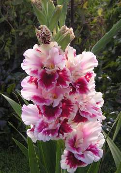Российские гладиолусы — отличаются высоким (до 180 см) и прочным цветоносом, крупными цветками (12-16 см), при этом одновременно открыто 8-10 бутонов! Гладиолусы российской селекции неприхотливы в выращивании! Практически все сорта имеют сильно гофрированные цветы! Изящность и необычная окраска бутонов делает эти цветы идеальными для срезки!