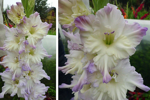 Российские гладиолусы — отличаются высоким (до 180 см) и прочным цветоносом, крупными цветками (12-16 см), при этом одновременно открыто 8-10 бутонов! Гладиолусы российской селекции неприхотливы в выращивании! Практически все сорта имеют сильно гофрированные цветы! Изящность и необычная окраска бутонов делает эти цветы идеальными для срезки!
