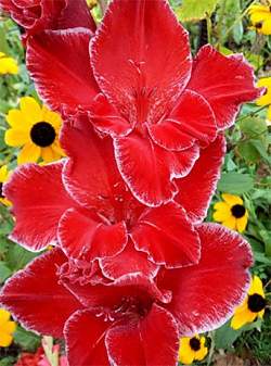 Гладиолус Игорь Тальков. 557, С-Г-95, Евдокимов. Темно-красный с изящной белой каймой, бархатистый, мощный.