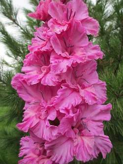 Российские гладиолусы — отличаются высоким (до 180 см) и прочным цветоносом, крупными цветками (12-16 см), при этом одновременно открыто 8-10 бутонов! Гладиолусы российской селекции неприхотливы в выращивании! Практически все сорта имеют сильно гофрированные цветы! Изящность и необычная окраска бутонов делает эти цветы идеальными для срезки!