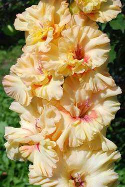 Российские гладиолусы — отличаются высоким (до 180 см) и прочным цветоносом, крупными цветками (12-16 см), при этом одновременно открыто 8-10 бутонов! Гладиолусы российской селекции неприхотливы в выращивании! Практически все сорта имеют сильно гофрированные цветы! Изящность и необычная окраска бутонов делает эти цветы идеальными для срезки!