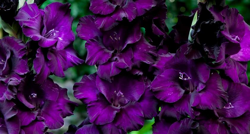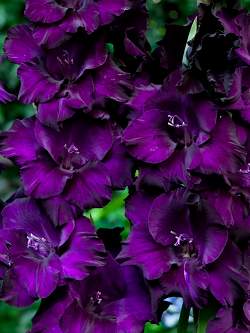 Гладиолус Момбаса (Mombassa). Луковицы хорошо растут и цветут на любой достаточно дренированной почве. Место для посадки выбирают защищенное от ветров и освещенное. Вертикальные стебли в высоту достигают до 120-150 см. Листочки линейные или мечевидные, насыщенно-зеленого окраса. Цветки собраны в мощные соцветия. Лепестки немного волнистые по краям. Окраска поражает своим великолепием: она темно-фиолетовая, красиво переливается на солнце.
