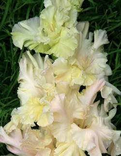 Гладиолус Необыкновенное Чудо. 511. Необыкновенной красоты и чистоты цветок. Подходит для ранней срезки. Нежно-кремовый с розовинкой, супер-гофрированный. Срок цветения 80-84 дня. Высота 165 см.