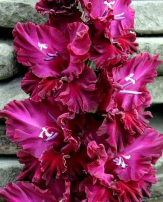 Российские гладиолусы — отличаются высоким (до 180 см) и прочным цветоносом, крупными цветками (12-16 см), при этом одновременно открыто 8-10 бутонов! Гладиолусы российской селекции неприхотливы в выращивании! Практически все сорта имеют сильно гофрированные цветы! Изящность и необычная окраска бутонов делает эти цветы идеальными для срезки!