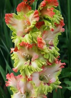 Российские гладиолусы — отличаются высоким (до 180 см) и прочным цветоносом, крупными цветками (12-16 см), при этом одновременно открыто 8-10 бутонов! Гладиолусы российской селекции неприхотливы в выращивании! Практически все сорта имеют сильно гофрированные цветы! Изящность и необычная окраска бутонов делает эти цветы идеальными для срезки!