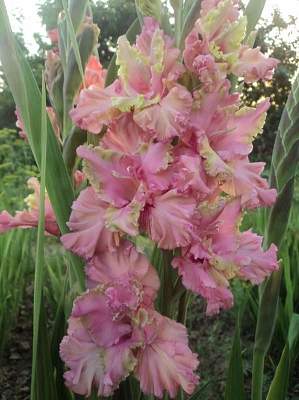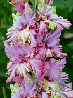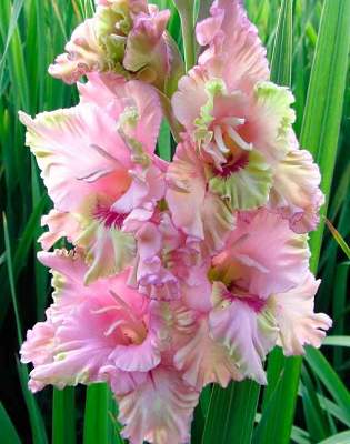 Гладиолус Прага. Этот сорт гладиолуса подарил миру легендарный селекционер Фотин. Очередной его шедевр прославился во всем мире и вдохновил других селекционеров на создание новых сортов. Гладиолус Прага высокий и объемный, его стебли облиственные и прямостоячие, до 130 см в высоту. Соцветия одновременно могут содержать в роспуске около 8-9 цветков, но общее количество бутонов в колосе — 23 штуки. Отличается сорт Прага великолепным, экзотическим окрасом, в котором сочетается нежный оттенок сиреневого и ярко-зеленый, окаймляющий лепестки. Гофрировка у гладиолуса прага очень выраженная, глубокая, с защипами и складками. При соблюдении всех правил посадки и ухода дочерние луковицы могут давать цветение в первый год.