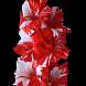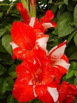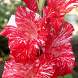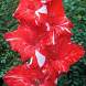 Гладиолус Зебра, 455. Высота 130 см. Соцветие 65 см, 20 бутонов (7 одновременно открыты). Бутон 14 см. Алый спокойного тона, по всей поверхности бутона беспорядочно расположены, разной длины и ширины белые штрихи (не муар). Очаровывает всех своей необычной окраской.
