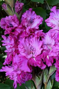 Российские гладиолусы — отличаются высоким (до 180 см) и прочным цветоносом, крупными цветками (12-16 см), при этом одновременно открыто 8-10 бутонов! Гладиолусы российской селекции неприхотливы в выращивании! Практически все сорта имеют сильно гофрированные цветы! Изящность и необычная окраска бутонов делает эти цветы идеальными для срезки!