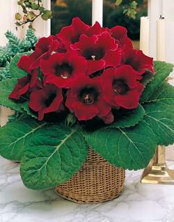 Глоксиния Etoile de Feu (Этуаль де Фё). Многолетнее травянистое бесстебельное или с коротким стеблем растение с клубневидным корневищем и бархатисто супротивно расположенными листьями. Используют глоксинии в качестве комнатного растения, способного достойно украсить квартиру или дом своим присутствием. Высота растения 25 см. Цвет красный.