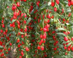 Годжи (Лициум) Нью Биг. Созревают в августе — октябре. Листья серо-зеленые. Цветки небольшие, пурпурного цвета, в июне августе. Полностью созревшие съедобны, вкусны и сладки. Плоды красно-оранжевые, содержат 2500 мг витамина С в 100 г.