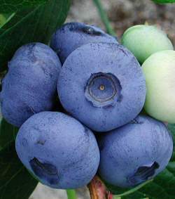 Сорт с необыкновенно крупными плодами! Диаметр ягод превышает 2 cм, а вес — 2 г. Часто встречаются ягоды размером более 2,5 cм в диаметре. Ягоды синего цвета, вкусные, плотные, с небольшим рубчиком. Урожайность высокая и регулярная.